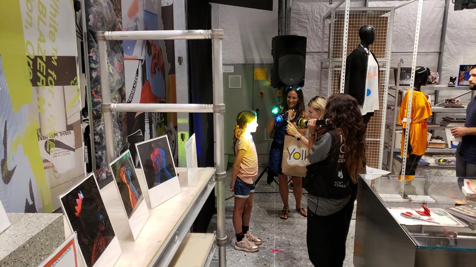 La mayor parte del espacio estaba dedicado a la educación y la creatividad; los invitados pueden aprender sobre el programa de reciclaje de material de zapatillas de Nike y participar en actividades prácticas como explorar libros relevantes y proyectos de colorear / manualidades alrededor de mesas de trabajo en un entorno abierto tipo taller.