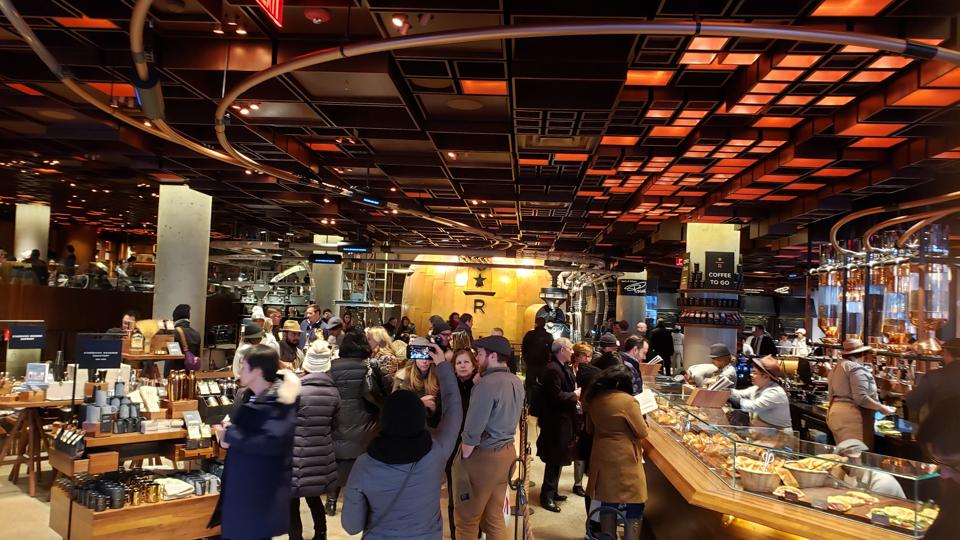 Starbucks describe sus ubicaciones en el Reserve Roastery como "experiencias inmersivas de café que celebran la herencia de la compañía y sirven como tributo al tostado y a la artesanía del café". Las seis ubicaciones (en una flota de 24,000 tiendas) en Seattle, Shanghai, Milán, Nueva York, Tokio y Chicago ofrecen vistas y sonidos y olores extraordinarios que son partes iguales de un salón de comidas y un salón a nivel de resort.