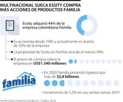 Esta empresa, que desde 1985 ha estado vinculada con la firma colombiana, actualmente es dueña de 50% de Familia. No obstante, con esta nueva transacción por 44% de los títulos, el objetivo de Essity no solo será manejar la propiedad de al menos 94% de acciones, sino expandir al Grupo Familia en América Latina.