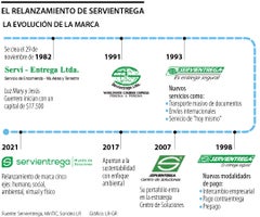 Desde 1982, cuando los hermanos Luz Mary y Jesús Guerrero crearon Servientrega con un capital inicial de $17.500, la compañía ha pasado por diversos cambios corporativos a nivel de imagen y concepto. (Ver gráfico)