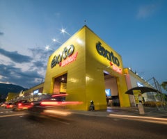 En ese momento y a pesar a sus pocos años de operación, pero basados en unas buenas condiciones económicas, la junta de socios de Almacenes Éxito tomó la decisión de adquirir este local, que tenía cerca de 500 parqueaderos. Allí ubicó un logo rojo, grande y llamativo para invitar a todas las familias antioqueñas, basado también en sus populares letras en mayúscula.