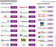 Las entidades bancarias internacionales que más utilidades registraron fueron Bbva con $558.412 millones; GNB Sudameris, con ganancias por $334.915 millones; ; y Scotiabank Colpatria con $115.458 millones. En Colombia operan nueve entidades bancarias extranjeras, de los cuales solo el Banco Pichincha ($21.138 millones) presentó pérdidas.