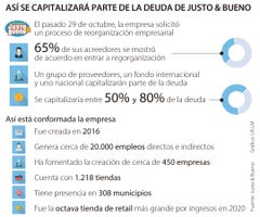Hace una semana, la compañía Justo & Bueno anunció que había concretado un plan de rescate o ayuda financiera con un grupo de proveedores y dos fondos de inversión. Puntualmente, lo que se dijo el pasado 20 de noviembre es que los proveedores propusieron capitalizar sus pasivos en porcentajes que oscilen entre 50% y 80% de la deuda cierta reconocida; y el excedente se pagará en los términos que indique el acuerdo de reorganización, una vez sea aprobado.se había explicado.