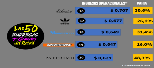 Las empresas de moda representan un importante tejido empresarial del país. 16 empresas están dentro de las 50 principales del retail en Colombia. Sus ingresos sumaron los $ 7,9 billones y crecieron un 40,6%.