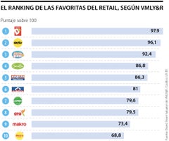 El cuarto lugar en favoritismo fue ocupado por Carulla, con un puntaje de 86,8, muy cercano a Alkosto, que le pisó los talones y cerró el top cinco con una puntuación de 86,3. Otro punto a destacar del estudio BAV es que Justo & Bueno, aunque ya dejó de funcionar, se mantiene en la mente de los consumidores en el tercer lugar. Los siguientes competidores de retail en el ranking son Olímpica, Jumbo, Ara, Makro, Metro, Colsubsidio, Surtifruver, Cafam y Cencosud. (Ver gráfico)