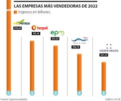 Las empresas más vendedoras obtuvieron ingresos por $1.217 billones en 2022, logrando una variación positiva de $308,43 billones más frente a la cifra registrada en 2021