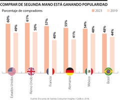 Sin embargo, Reino Unido es el territorio donde más han aumentado sus compras de segunda mando, ya que en 2019 50% de las personas habían comprado algo por este estilo, mientras que en la actualidad la cifra de los encuestados asciende a 61%.