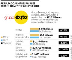 Grupo Éxito registró ingresos consolidados acumulados a septiembre por $15,7 billones, con un crecimiento de 8,9% y un ebitda recurrente de $1,1 billones.