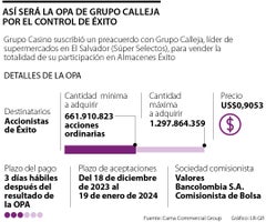 Este viernes Grupo Éxito compartió los resultados de la OPA en EE.UU. que cerró ayer a las 11:59 p.m., en la que Grupo Calleja consiguió 65,1% del capital social la compañía, y con 20,03% que ya ha adquirido en Colombia, tendría 85,1% de Almacenes Éxito.