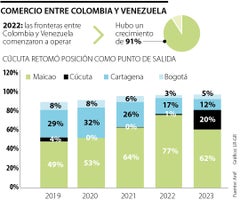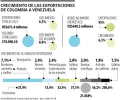 En 2022, las fronteras entre Colombia y Venezuela comenzaron a operar con normalidad, lo que derivó en un crecimiento de 91% en las exportaciones de Colombia hacia Venezuela, 6% entre 2022 y 2023. Además, creció 426% en 2023 frente a 2019.