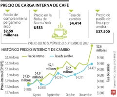 El café llegó a su precio más alto registrado, alcanzando la carga por $2,59 millones