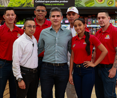 Juan Gabriel Ángel gerente general de Supermercados La Vaquita y colaboradores del Supermercado.